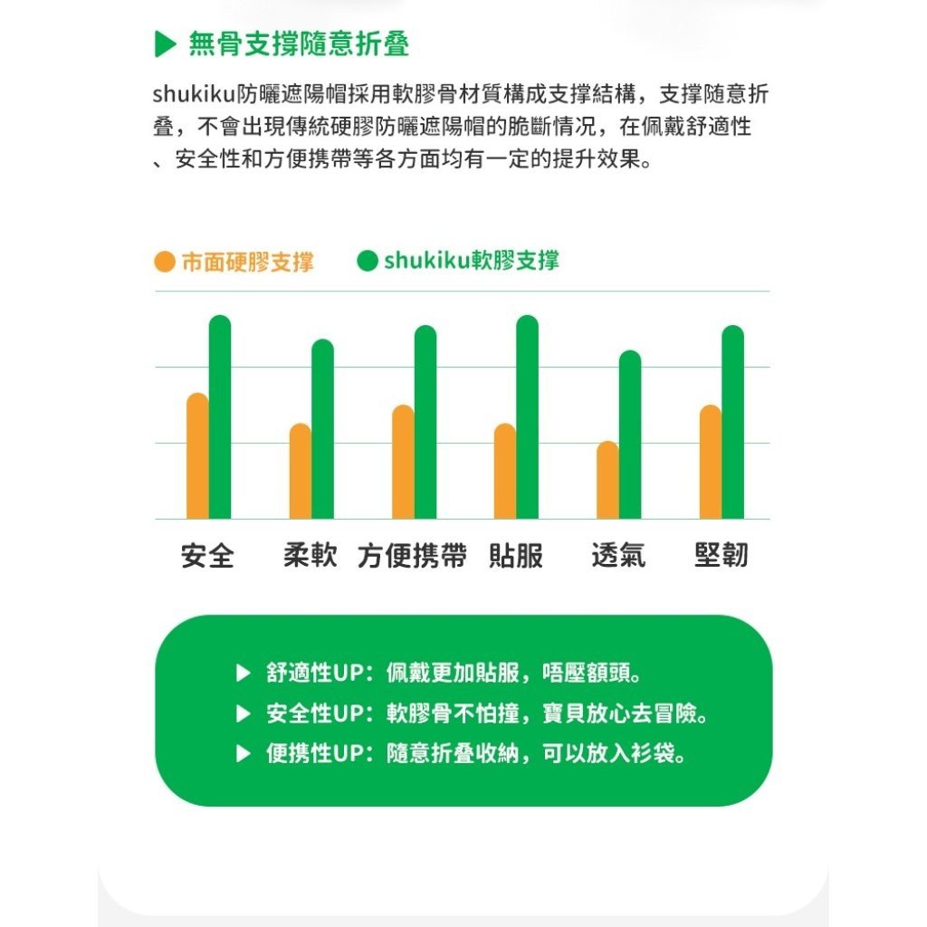 shukiku防曬遮陽帽採用軟膠骨材質構成支撑結構